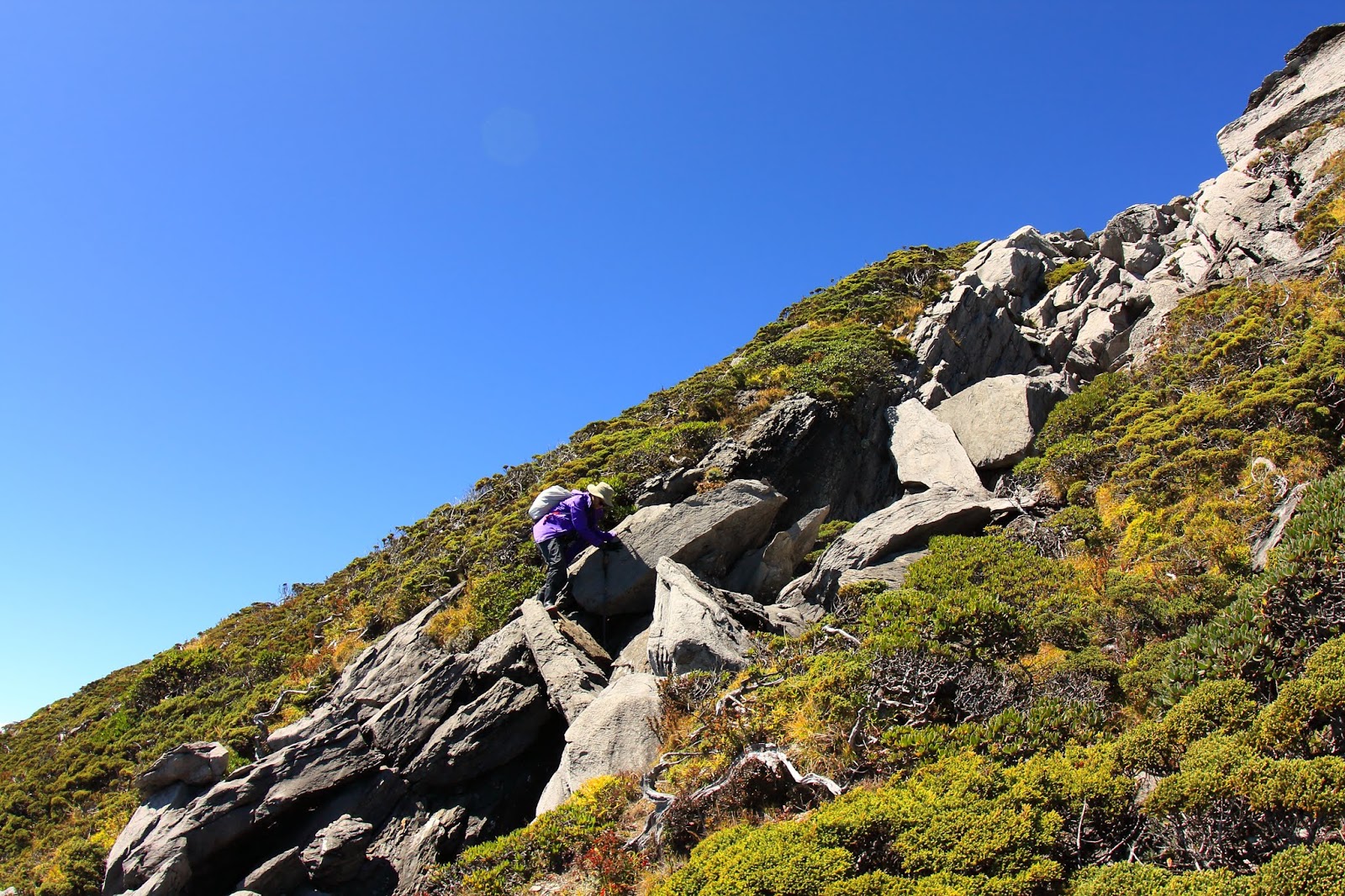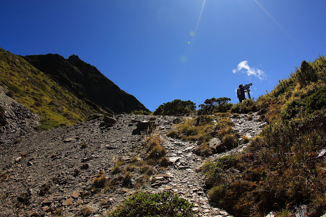 重新打起精神,眼前就是中央尖山了。想想以前還在學校的時候真的蠻蠢的,不知道為啥,社團內的氣氛營造出”攀登中央尖山是一個偉大的目標”,也許是名子裡面有一個”中央”吧。大家爬中央尖山的慾望好像強過於其他山。哈哈。不過確實,我從大一的時候,就一直想安排一趟中央尖之行,幾乎要成行了,但當年被狂犬病爆發的新聞嚇到(那一年每天都有新聞說誰在山區被咬,嚇死誰啊)因此作罷。但大二下進實驗室後就沒甚麼時間可以擠出來爬7天的縱走了。心心念念的中央尖山,就在眼前,不知道為什麼,走這一段草坡的時候心裡感觸很多,很像是來拜訪一位有著七年之久的約定的朋友,排除萬難來相見的感覺。
