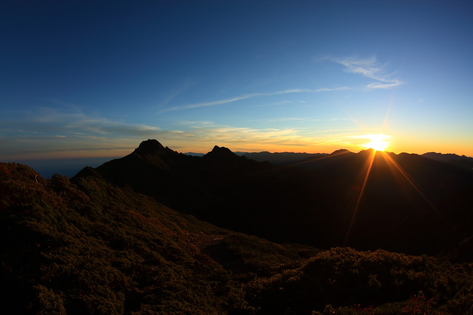 05:21 通過三叉峰後,我們看見太陽已經出現在東方的中央山脈之上了。 玉山圓柏灌木叢跟杜鵑花被金黃色的太陽照耀。