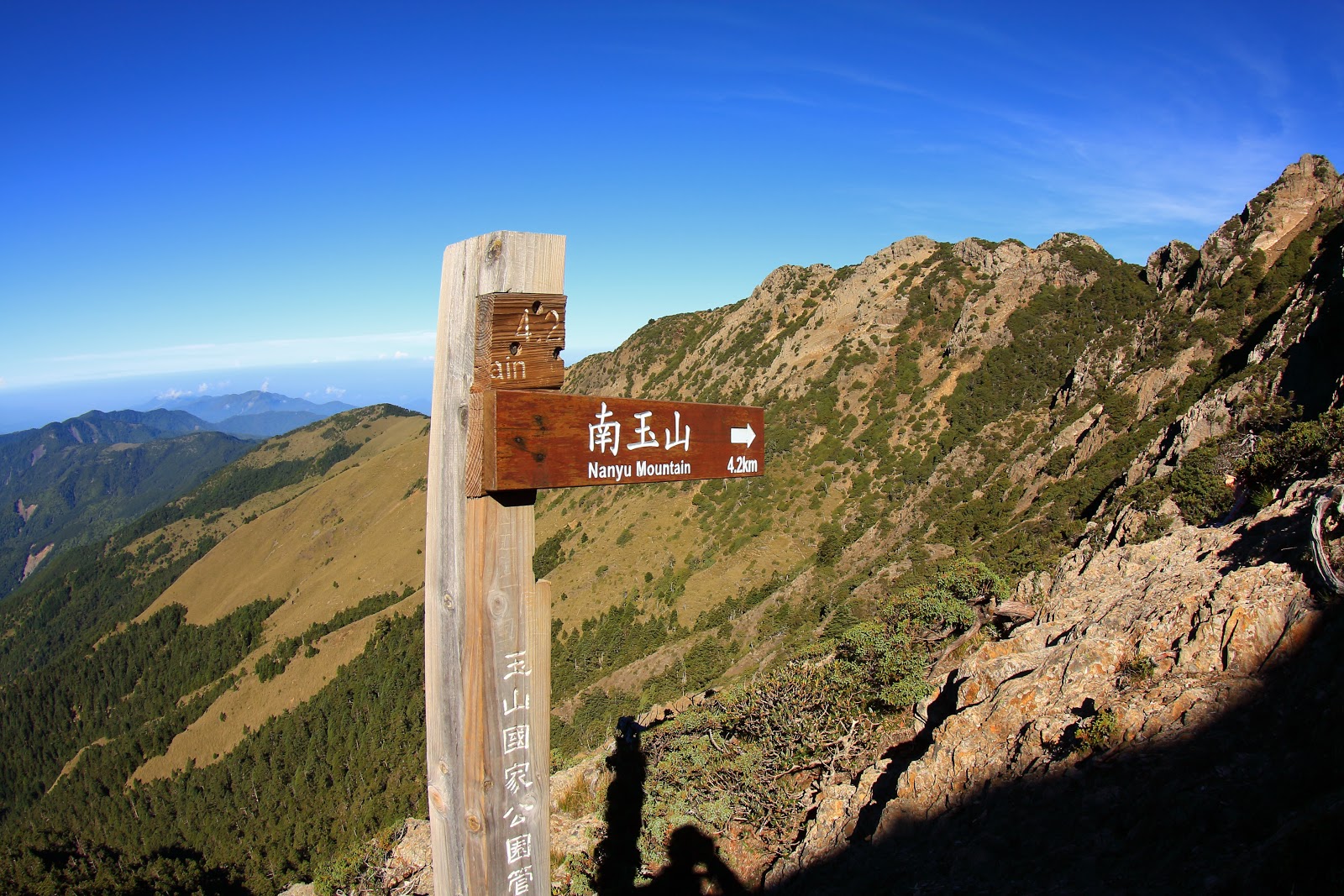 玉山群峰的第三天,這一天我們要去攀登昨天漏掉的玉山南峰。鑑於昨天去東小南山的時候有稍稍探過路了,我們知道要攀登南峰可不容易,日出前摸黑爬可能不太好,於是我們打算睡晚一點,等到日出後再開始攀登南峰。攀登完南峰後我們回頭往岔路口,踏上南玉山的小徑。玉山山脈由主峰開始沿著南稜線往南延伸,至三叉峰後分岔成兩條,一條就是玉山南峰+東小南山的稜脈,另一條就是小南山+南玉山的稜脈。三叉峰位在三叉點上,是名符其實的三叉峰。