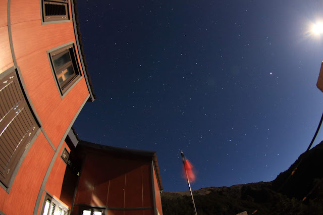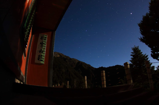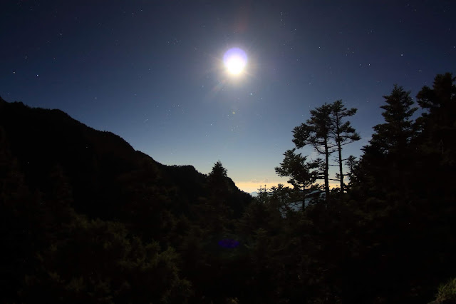 後來我發現,最後一天住排雲山莊可真不是好主意,因為多數人凌晨一點就起床準備吃早餐,兩點多出發去主峰看日出。而且我覺得排雲山莊睡起來不是很舒服(我還是喜歡小而巧的圓峰山屋)。當晚我大概只睡了4個小時,凌晨被吵醒後想說就出去賞個月吧。凌晨三點多,原本吵雜的山屋回到了原本的寧靜,接著陸陸續續有單攻的山友出現。
