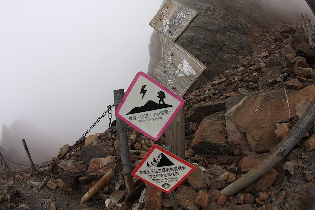 最近這幾天下午天氣說變就變,雖然我們已經在主東叉路口了,但我們想趁著天氣還好,趕快去玉山主峰拍照! 通過玉主東叉路口後,往玉山主峰前去,前方有人在拍照的地方,就是玉山主峰了!! 睽違了多年,終於要登上玉山主峰了!!