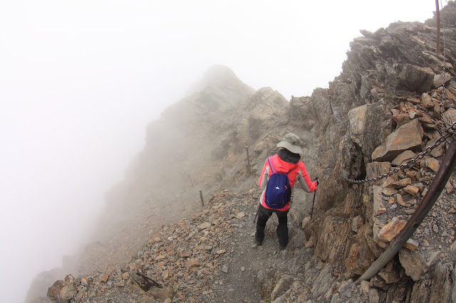 回到主峰後,雲霧整個罩過來,早上看到的超讚環景完全消失在這一片濃霧之中!