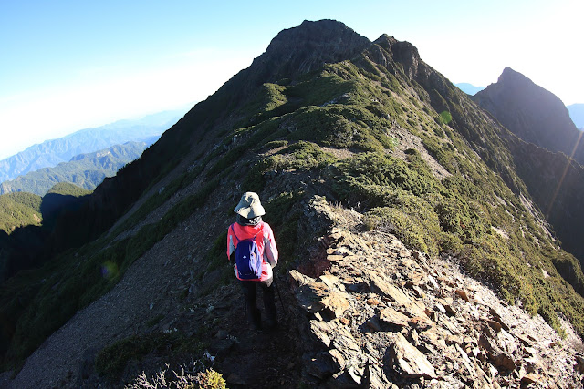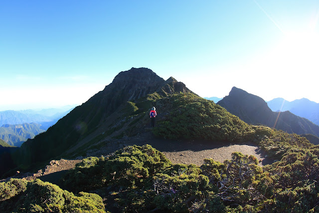 從主東岔路口回望,這一段玉山南稜線景觀真是壯觀,這可是台灣最高的稜線呀。人家都說玉山好爬,不難。我爬完南稜線後再也不覺得玉山好爬了…。玉山破碎的地形,其實是不容易接近的,只是玉山的名氣,讓西北側的碎石坡步道維護完善,還有各種安全設施,才會有玉山很好爬的錯覺,來走看看這樣原始的稜線,不知道還會有多少人覺得玉山好爬XD (至少我現在覺得玉山不好爬)