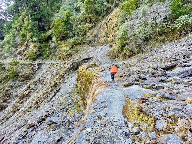 由郡大林道33k行車終點下車整裝後便從此處開始了我們5天的旅程。前方即是林道坍方,我們去年來的時候這個坍方路還需要下切走低繞路,我記得當時走起來還有一點可怕,但今年發現上方有開出一條穩固的路徑,快速通過。