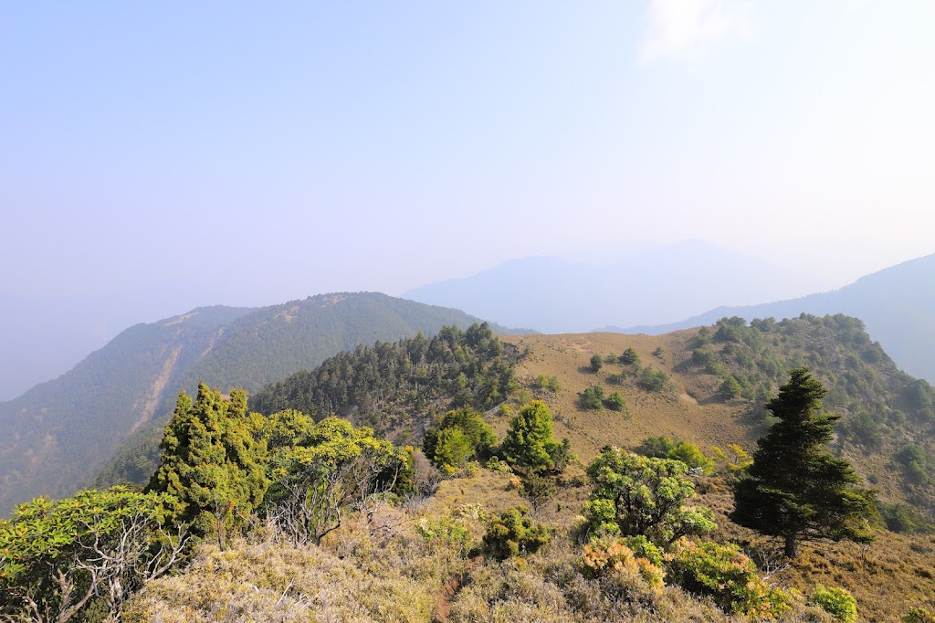 向西方望去,可見郡大溪谷,以及對面隱身於薄霧中的玉山山脈