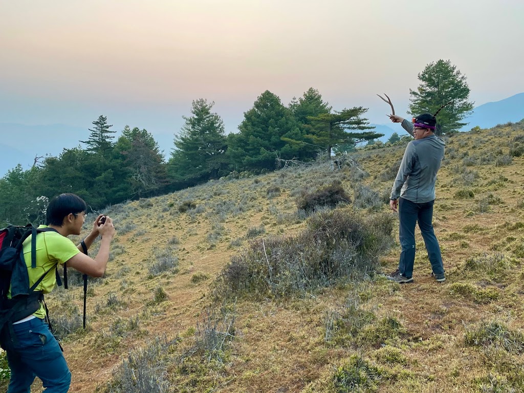 我們從山頂前往向東北方的稜線,這裡有一個山友標註的航點”穩定水鹿澡堂”