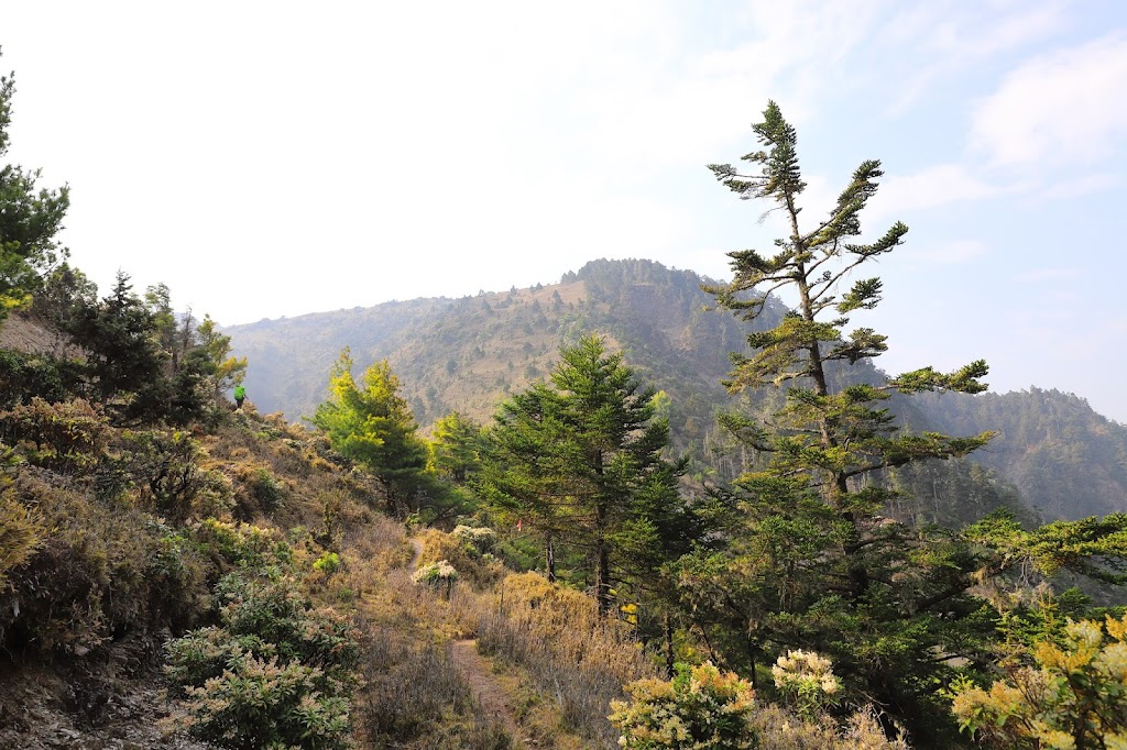 回到盆駒馬博傳統百岳路線,並不代表從這裡開始就是一片坦途了。盆駒山的海拔高度只有三千出頭,然而馬博拉斯山海拔高三千七百公尺以上。代表我們今天還有一大段陡坡要面對呢。尤其這條路又沒甚麼遮蔽,接近中午的烈日加上缺水路線,我們邊走邊惋惜當初在郡大溪底怎麼沒多喝一口水呢QQ