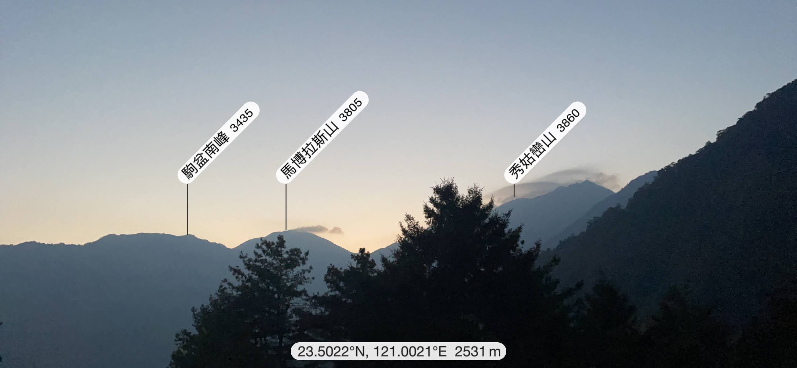 當晚我們在觀高工作站度過一晚,這是郡大林道上的工作站,早年郡大林道經過觀高工作站後,從八通關山腳下繞過,在往秀姑巒山、馬博拉斯山方向駛去,經過秀馬連稜西側後,最後到達盆駒山腳下。