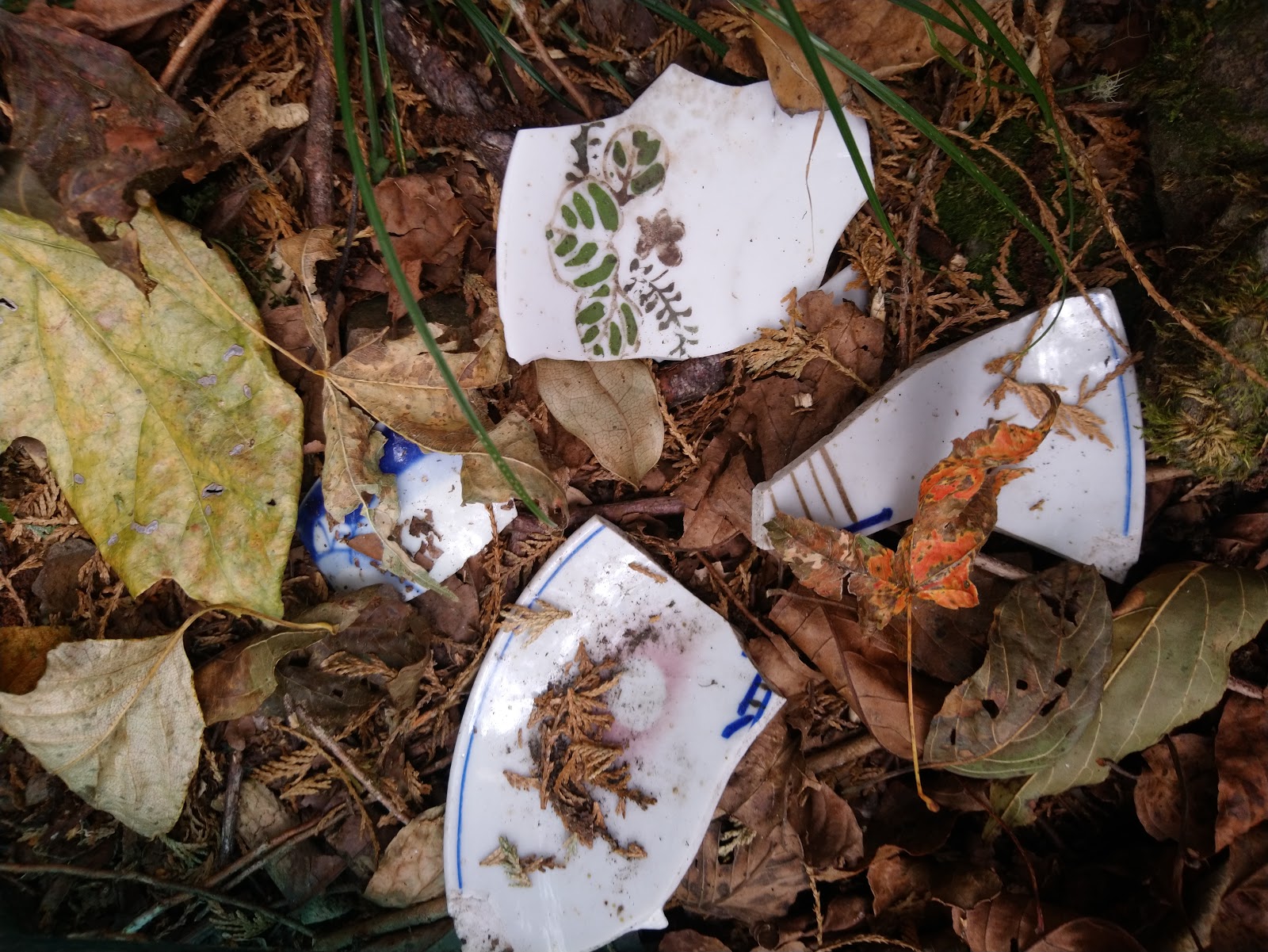 佐藤警官駐在所是根本古道上規模最大的駐在所,總共有兩層,原本根本古道上的大門下方還有早期的山葵園。佐藤駐在所遺址疑留下了大量的酒瓶、一部分的電線礙子、陶瓷彩繪碗盤等…。以前聽登山社的學長姐提到佐藤警官駐在所,都是利用”大量的”、”隨手可撿的”等形容詞來描述散落的遺留物,可是這次來到現場看,除了大量地酒瓶以外,有彩繪的陶瓷碗盤跟酒杯的數量非常稀少,而且沒完整的,大多是碎片。可能完整的瓷器都被撿光了吧QQ
