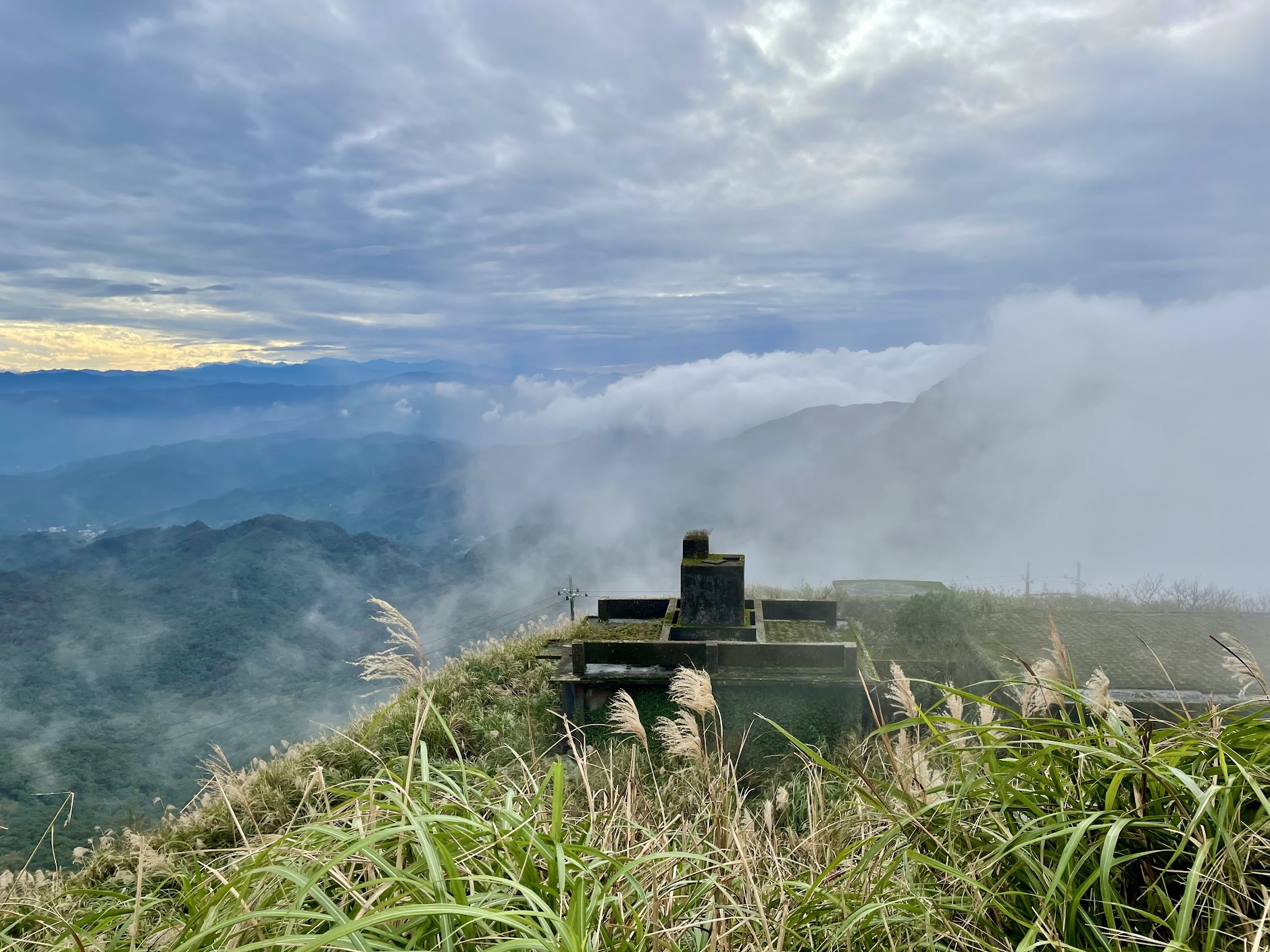 草山因為搭建雷達建設,山頂平坦,四周開闊,向東北方向望去應該是可以看到海的,但因為天氣不好,眼前只剩一大片白茫茫的雲霧。