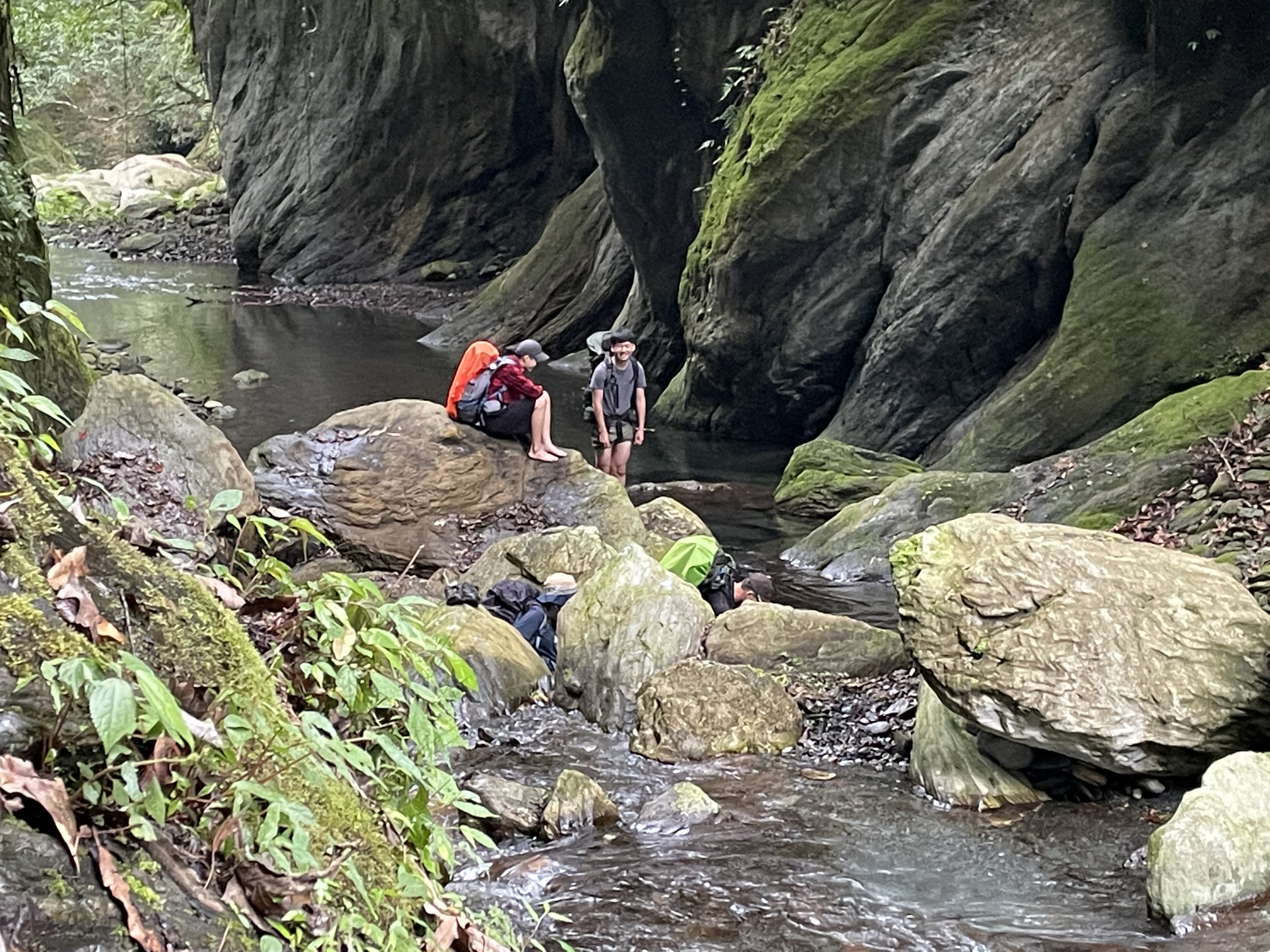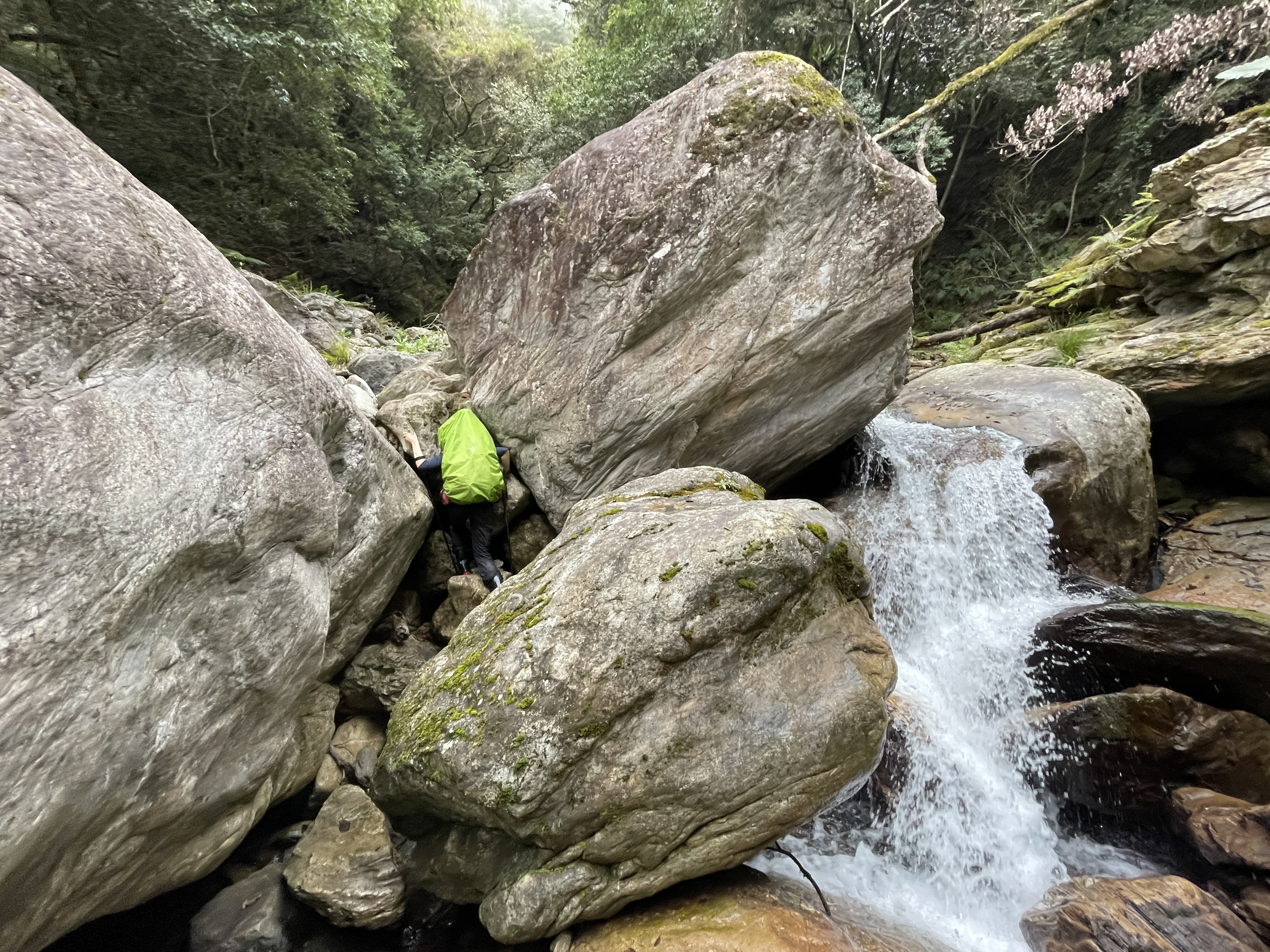 切下溪谷。這一段溪谷上溯的距離不長,但有三處需要高繞的地方,其中第二處高繞以及第三處高繞需要小心一點。尤其是第三處高繞,繞上去的距離滿長的,而且路徑不明確。